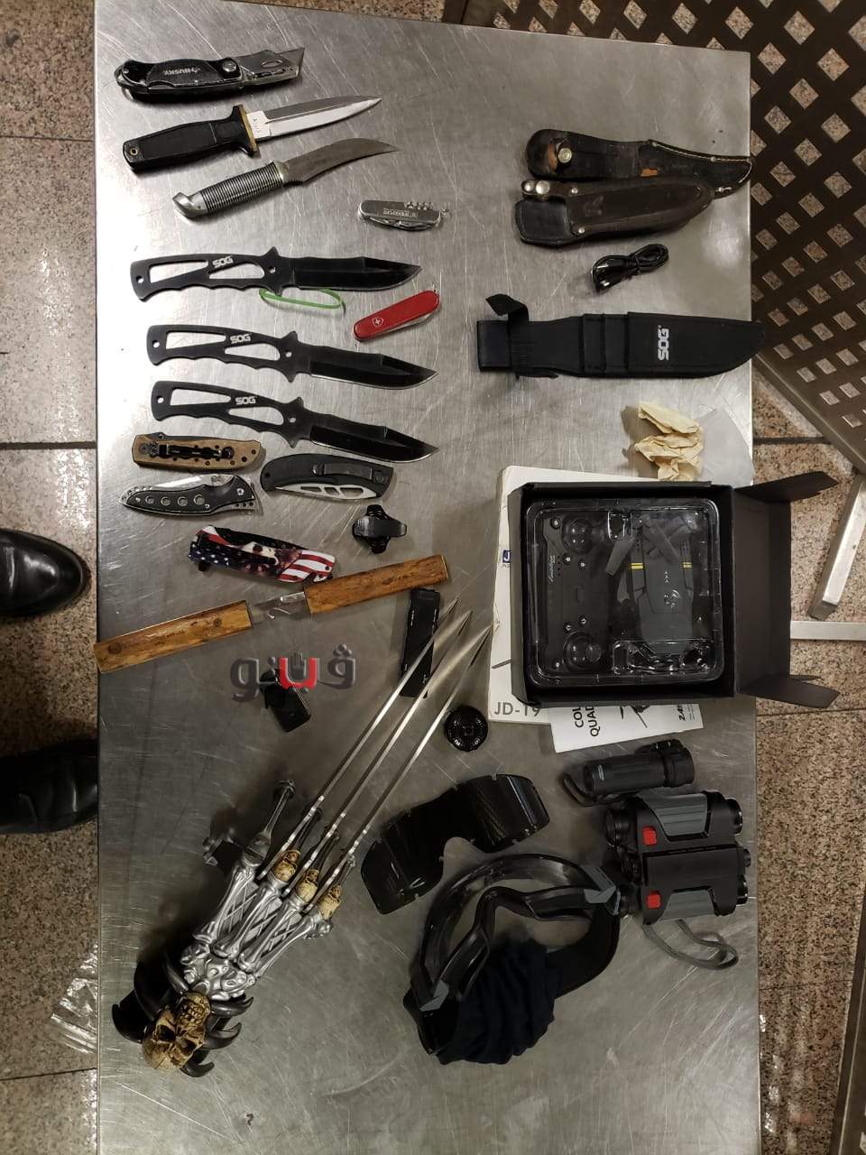 ضبط أمريكي حاول تهريب سيوف أثرية وملابس عسكرية وطائرة تجسس | صور