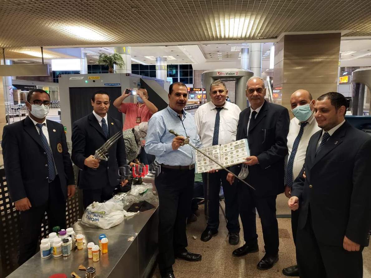 تمكنت سلطات جمارك مطار القاهرة الدولي اليوم الإثنين من إحباط محاولة تهريب أسلحة بيضاء وسيف أثري من العصر الأموي وقطع أثرية من عصور مختلفة وملابس عسكرية ومخدرات وطائرة تجسس حاول راكب أمريكي من أصل مصري إخفاءها داخل حقائبه فور وصوله من أمريكا ترانزيت ألمانيا لتضليل رجال الجمارك والعبور بالمضبوطات وتم تحرير محضر بالواقعة.
