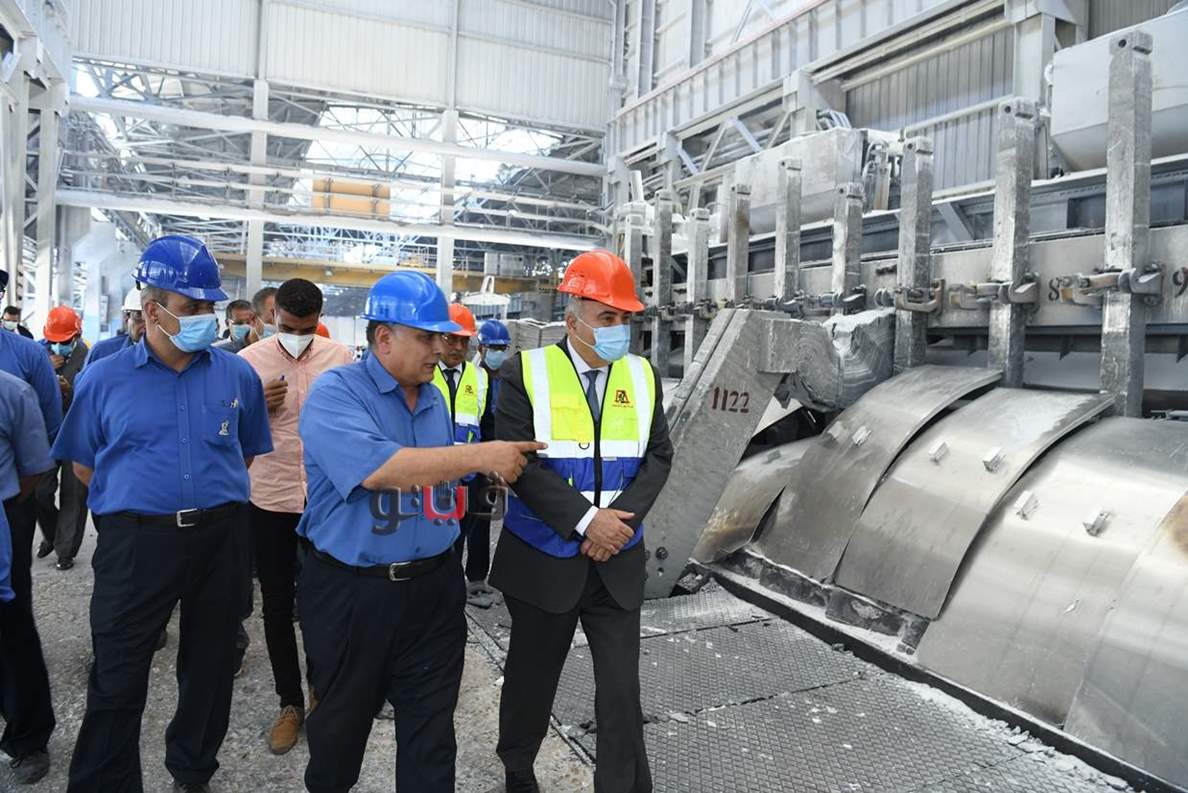 تفقد اللواء أشرف الداودى محافظ قنا خطوط إنتاج مجمع مصانع الألومنيوم بمدينة نجع حمادي بهدف متابعة سير العمل والتعرف على مراحل إنتاج معدن الألومنيوم رافقه المهندس محمود سالم رئيس مجلس إدارة المصنع وعدد من المهندسين والفنيين العاملين بالمصنع .