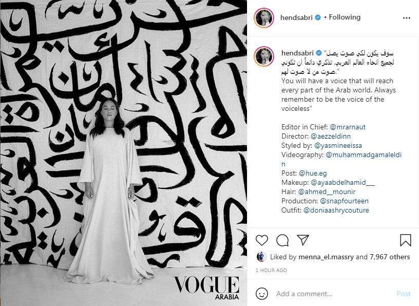 التونسية هند صبري عبر حسابها الشخصي على موقع الصور الشهير "انستجرام"،