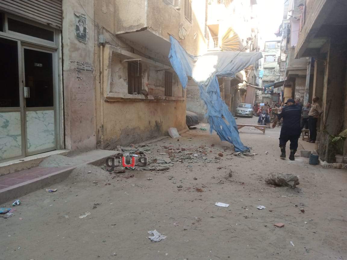 انهيار شرفة وإزالة موطن الخطورة لعقار من ثلاث طوابق في المنصورة