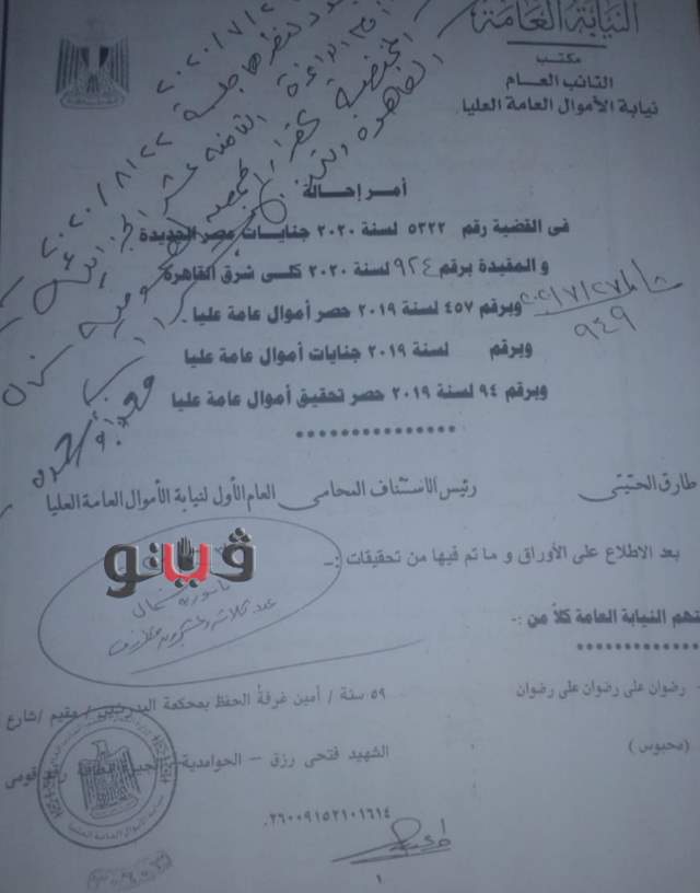 حملت القضية الرقم 5322 لسنة 2020 جنايات مصر الجديدة، وقيدت تحت رقم 94 لسنة 2020 حصر تحقيق أموال عامة عليا، وتم التحقيق فيها تحت إشراف المستشار طارق الحتيتي المحامي العام الأول لنيابة الأموال العامة العليا.