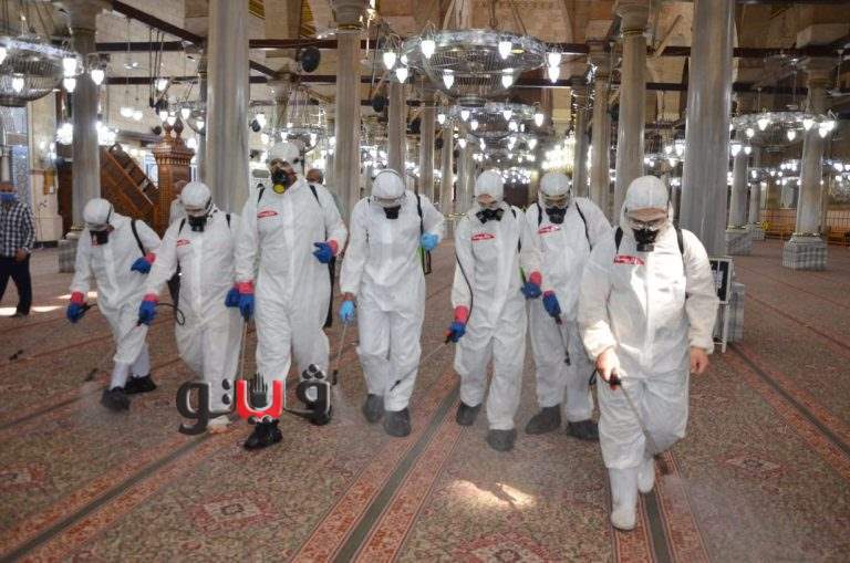 ووجه الدكتور محمد مختار جمعة وزير الأوقاف جميع المديريات بالقيام بحملة نظافة وتعقيم واسعة تنطلق من الاثنين إلى الخميس القادم استعدادا لعودة صلاة الجمعة القادمة .