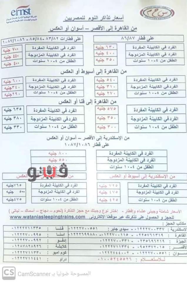 حصلت فيتو على قائمة بأسعار قطارات النوم، فيما يخص المواطنين المصريين وبما يساهم فى توفير خدمة مميزة للراكب المصرى.