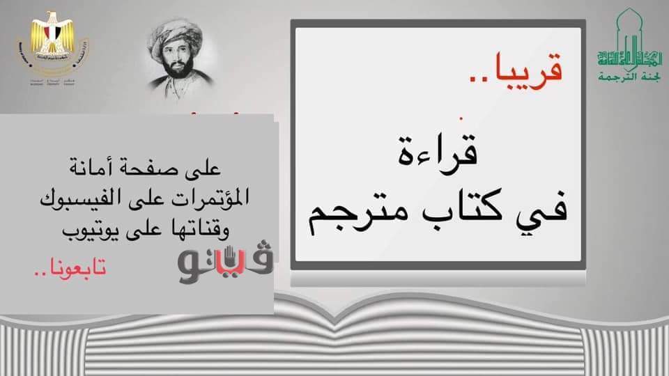 تتطلق لجنة الترجمة بالمجلس الأعلي للثقافة برئاسة محمد حمدي إبراهيم ، قريباً، مبادرة ثقافية جديدة أون لاين معنونه بـ " قراءة في كتاب مترجم " ، بالتعاون مع وحدة أمانة المؤتمرات بالمجلس.