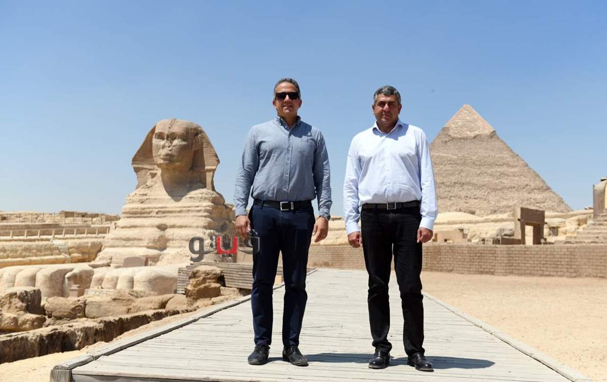 زار الدكتور خالد العناني وزير السياحة والآثار، وزوراب بولوليكاشفيلي الأمين العام لمنظمة السياحة العالمية، إلى منطقة أهرامات الجيزة، وذلك في ختام زيارة الأمين العام للمنظمة لمصر والتي استمرت ثلاثة أيام على رأس وفد من مسئولي المنظمة المعنيين بالتعاون الدولي والفني ومنطقة الشرق الأوسط.