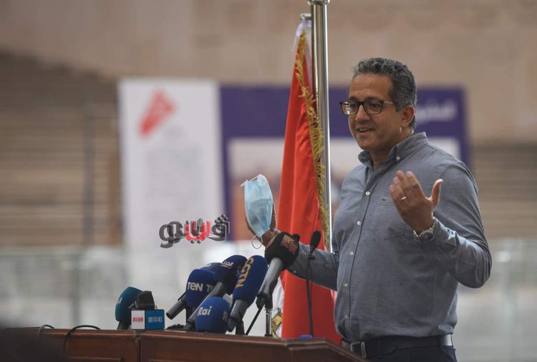 ومن جانبه، استهل الدكتور خالد العناني وزير السياحة والآثار كلمته بالترحيب بالحضور، معربا عن انبهاره وفخره الذي يزداد بما يشاهده فى كل مرة يقوم فيها بزيارة هذا الصرح الثقافي العظيم، مقدما الشكر للواء عاطف مفتاح وفريق العمل المعاون له على الجهود التي يبذلونها دون توقف رغم أزمة فيروس كورونا المستجد للانتهاء من هذا الإنجاز والصرح الذي تقدمه مصر للبشرية حيث أن هذا المتحف سيكون مفاجأة للعالم أجمع.