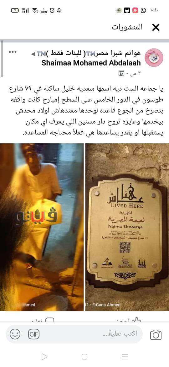 الفريق مع حالة السيدة سعدية خليل 88عاما والتي تداول قصتها رواد مواقع التواصل الاجتماعي.