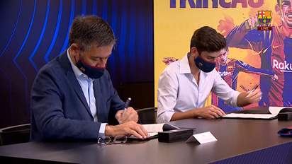 وقع البرتغالي فرانسيسكو ترينكاو، لاعب سبورتنج براجا، عقود انتقاله إلى نادى برشلونة، بعدما توصل النادى الكتالوني لاتفاق مع براجا فى يناير الماضى لضم الجناح صاحب الـ20 عاما مقابل 31 مليون يورو، اعتبارًا من الموسم الجديد، وظهر اللاعب فى مقر برشلونة ووقع عقود انتقاله بحضور أسرته ورئيس النادى جوسيب ماريا بارتوميو.
