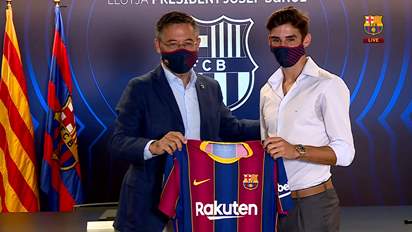 وعقد نادى برشلونة مؤتمرا صحفيا لتقديم اللاعب وسط الأزمة الكبيرة التى يعيشها برشلونة عقب إعلان ميسي رغبته في الرحيل .