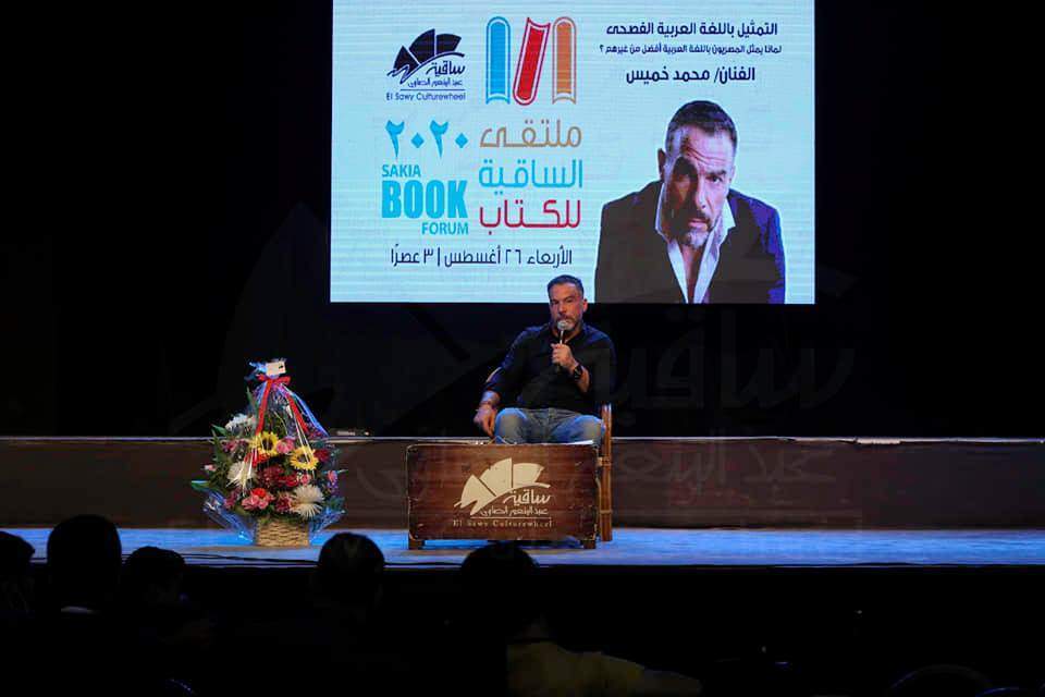 أختتم الفنان محمد خميس , اليوم الأربعاء 26 أغسطس, ملتقي الساقية للكتاب في دورته العاشرة , من خلال تقديمه ورشة حول التمثيل باللغة العربية الفصحي و المعنونه بــ "لماذا يمثل المصريين باللغة العربية الفصحى أفضل من غيرهم ؟!".