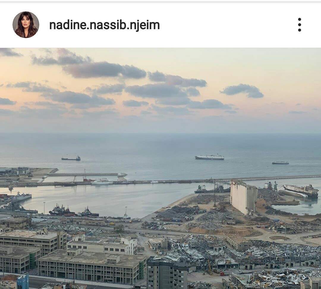 نشرت الفنانة اللبنانية نادين نسيب نجيم عبر حسابها الشخصي على موقع الصور الشهير "انستجرام"، صورا جديدة ترصد حجم الدمار الذي أصاب مرفأ بيروت بالعاصمة اللبنانية، جراء الانفجار الذي ضربه يوم 4 أغسطس الجاري، مخلفا المئات من الضحايا.