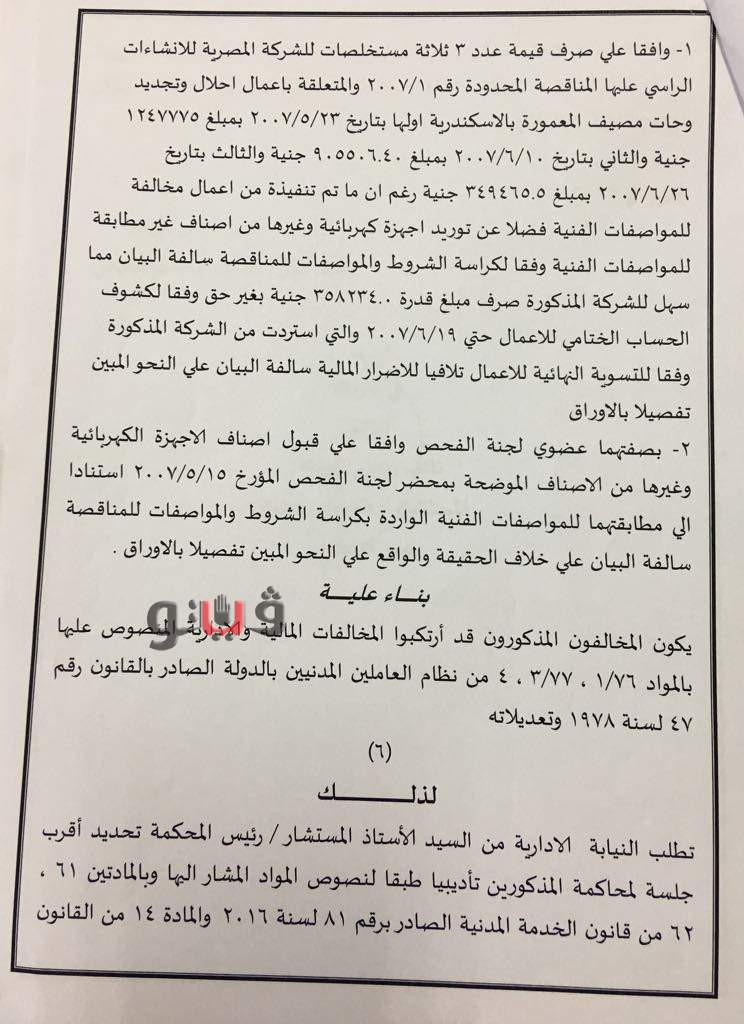 وتبين أن المحالين وافقا علي صرف قيمة 3 مستخلصات للشركة المصرية