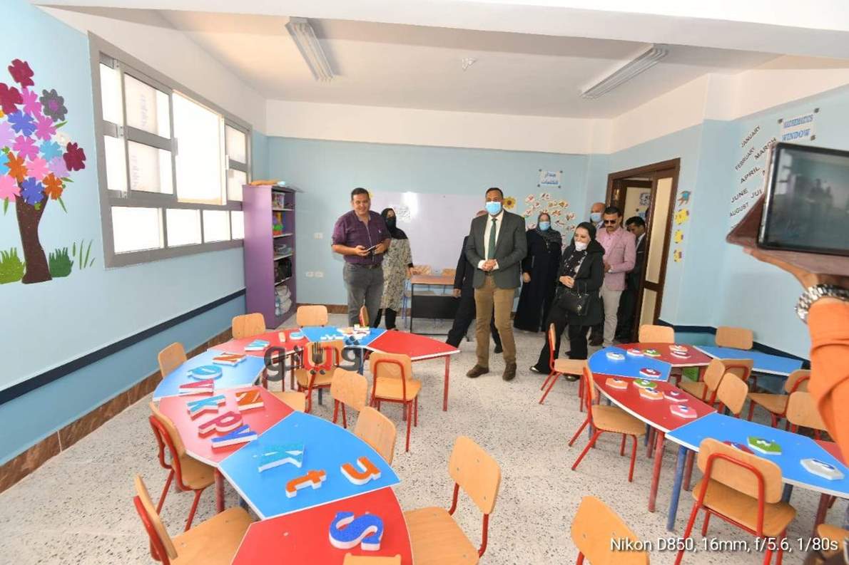 وتفقد المحافظ الفصول الدراسية والمعامل وفصول رياض الاطفال وفناء المدرسة .