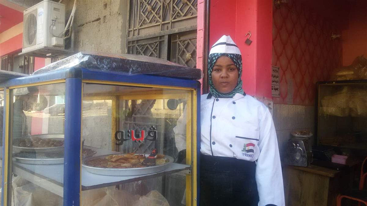 المخبز يدل على حرص فتيات الصعيد على العمل بغض النظر على المؤهل الدراسي ومنهن زينب طه حميد التي تعمل محاسبة بأحد محال بيع الحلوى، من قرية بحري قامولا بنقادة