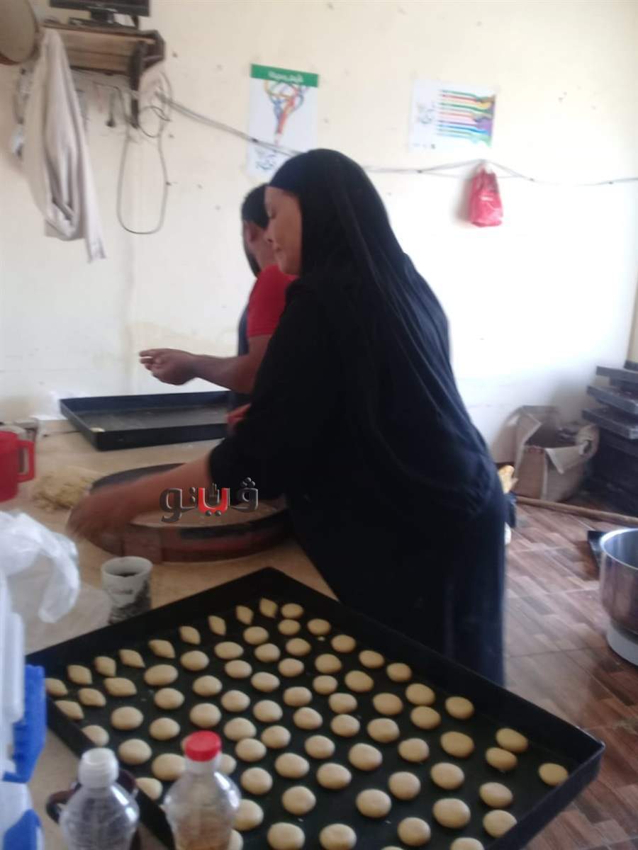 وإلى جوارهن الأفران المشتعلة، وتقف أخريات على صناعة الحلوى والخبز.