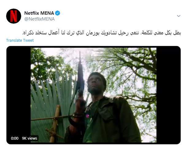 بطل بكل معنى للكلمة. ننعى رحيل تشادويك بوزمان الذي ترك لنا أعمال ستخلد ذكراه. pic.twitter.com/SPi8u4DY3B— Netflix MENA (@NetflixMENA) August 29, 2020