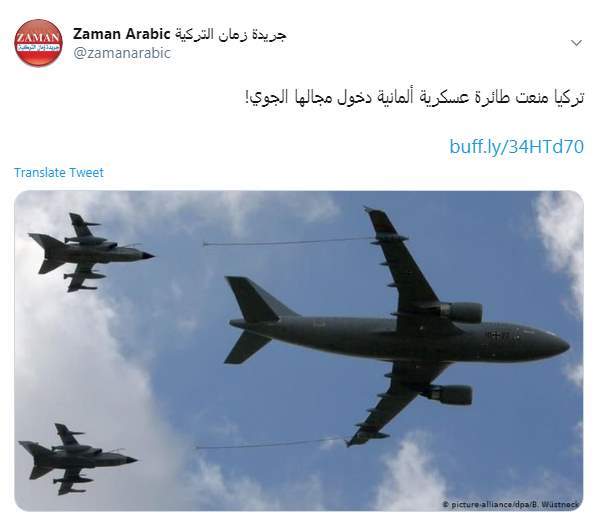 وأوضحت المجلة أن الواقعة حدث خلال شهر يوليو الماضي، عندما رفضت أنقرة السماح لطائرة نقل عسكري ألمانية المرور من مجالها الجوي، موضحة أن الواقعة ترفع التوترات بين أنقرة وبرلين.