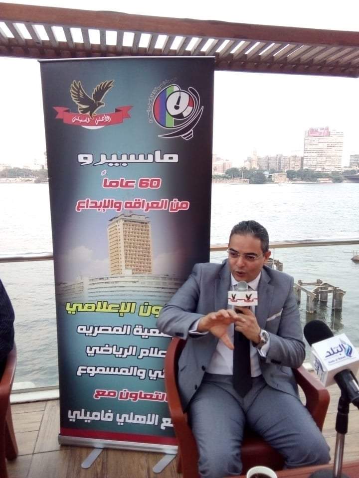 جاء ذلك خلال الصالون الذي اقامته الجمعية المصرية للإعلام الرياضي المرئي والمسموع والمعروفة باسم رابطة الإعلاميين الرياضيين الصالون الرياضى تحت عنوان «ستون عاما على إنشاء ماسبيرو ...اعلام الشعب والدولة ».