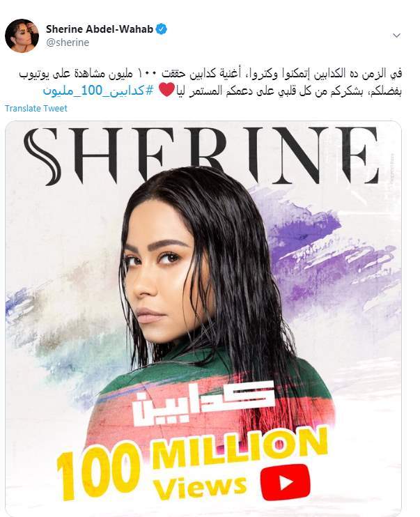 وكتبت شيرين عبد الوهاب تغريدة على تويتر " في الزمن ده الكدابين إتمكنوا وكتروا، أغنية كدابين حققت ١٠٠ مليون مشاهدة على يوتيوب بفضلكم، بشكركم من كل قلبي على دعمكم المستمر ليا.. #كدابين_100_مليون"