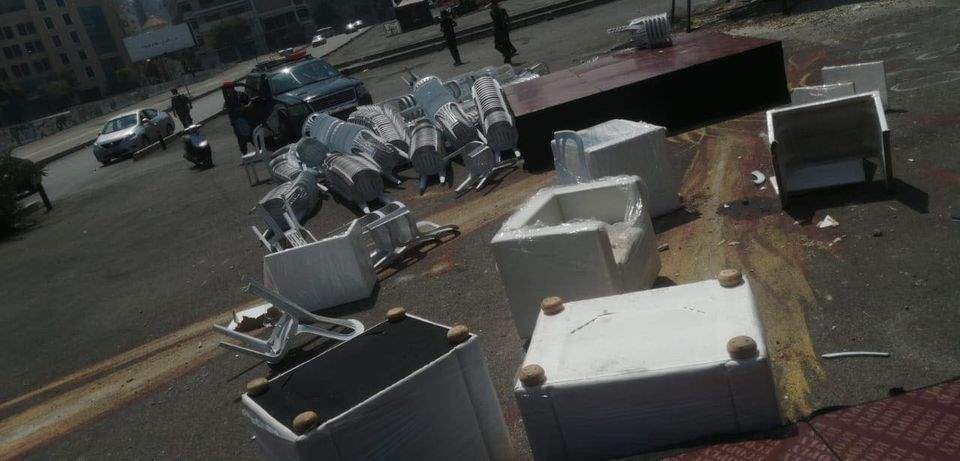 واعتدت عناصر من حزب الله على معدات (شاشة ومعدات صوت ومسرح وكراسي) مخصصة لمجموعات ثورة ١٧ تشرين اللذين يحضرون لمؤتمر صحفي اليوم لإطلاق مبادرة سياسية في مواجهة أحزاب السلطة.