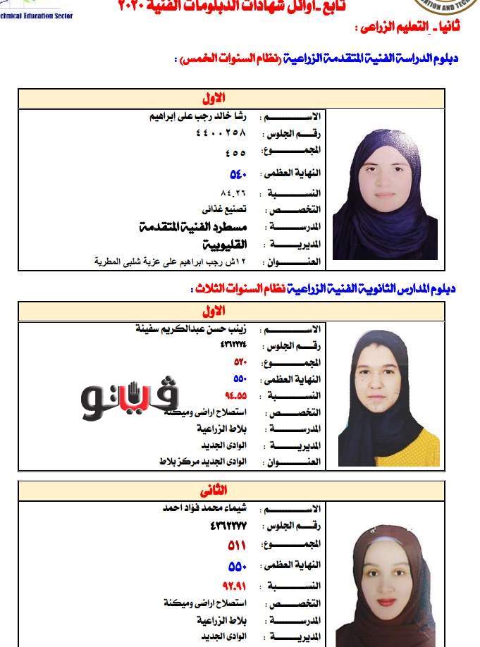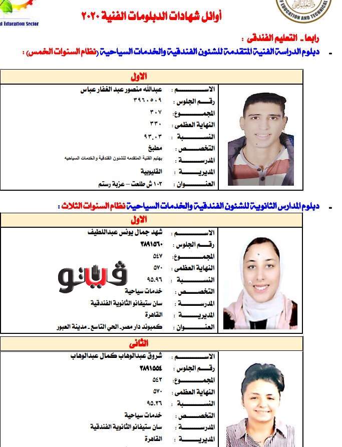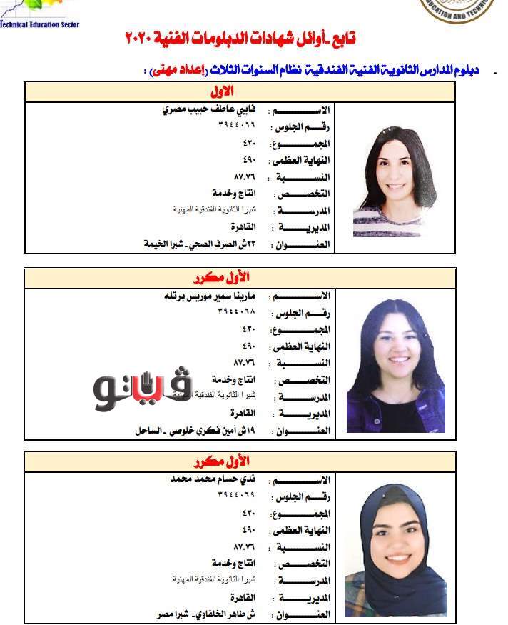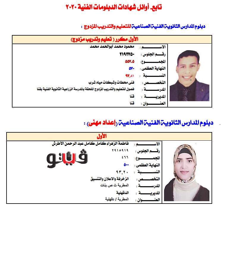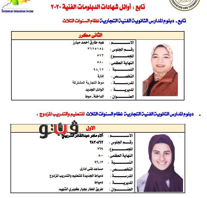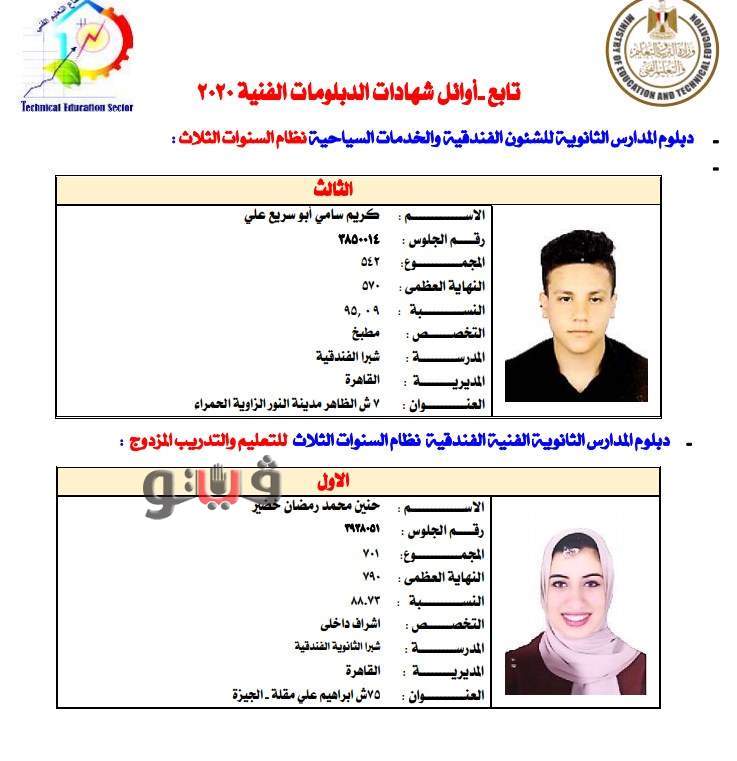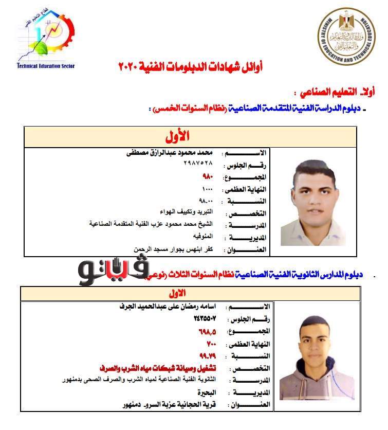 أسماء أوائل الدبلومات الفنية 2020 على مستوى الجمهورية | صور