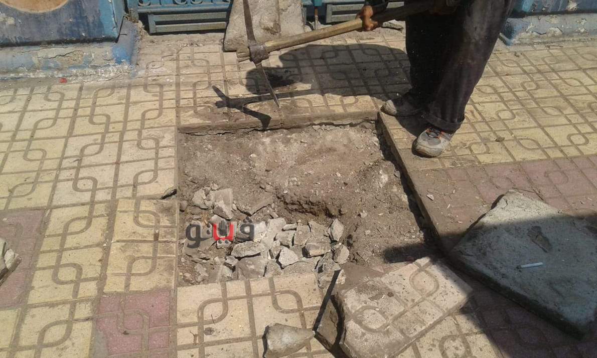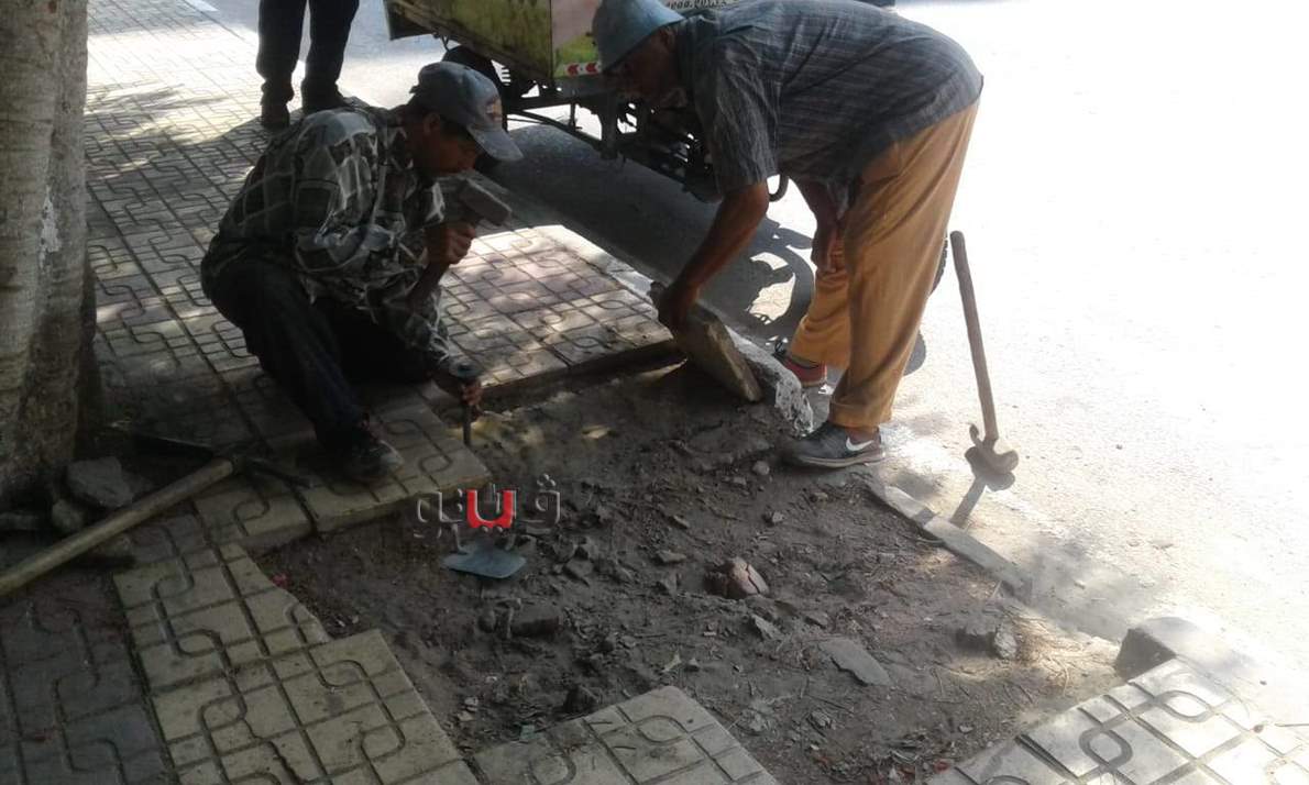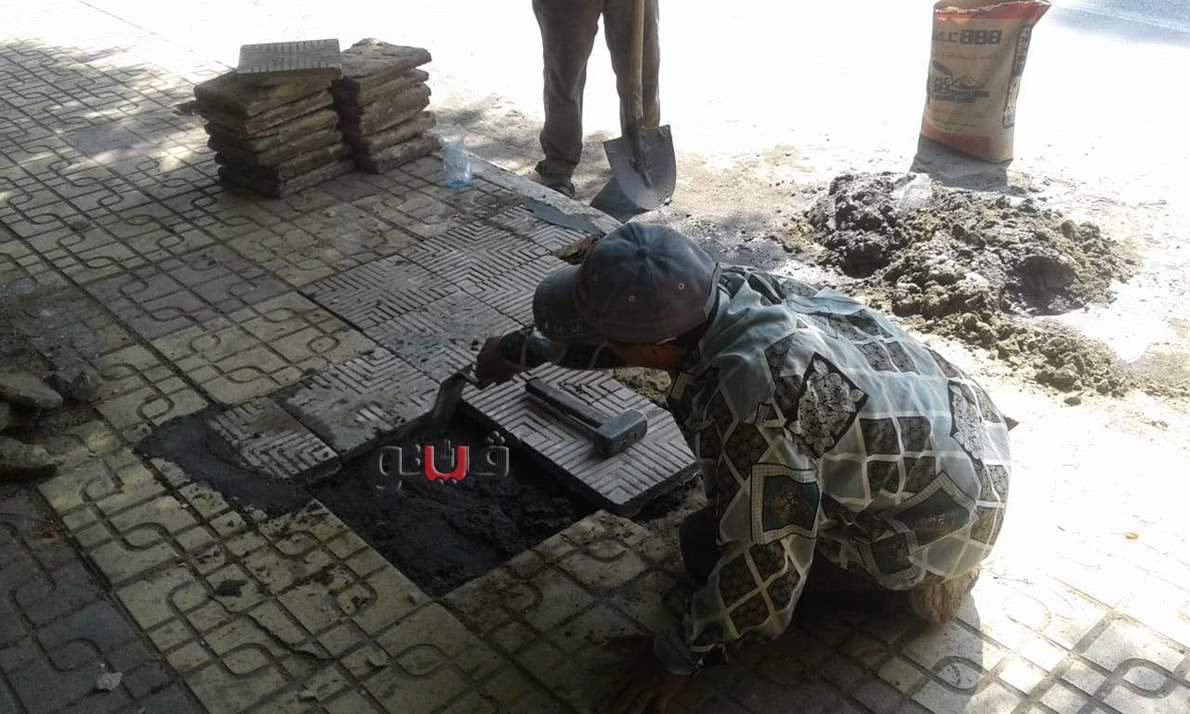 ١٠ صور ترصد أعمال الورش الصناعية لترميم أرصفة المشاة بشوارع المنصورة