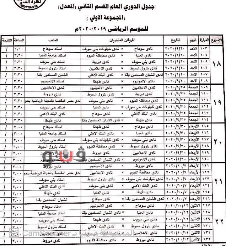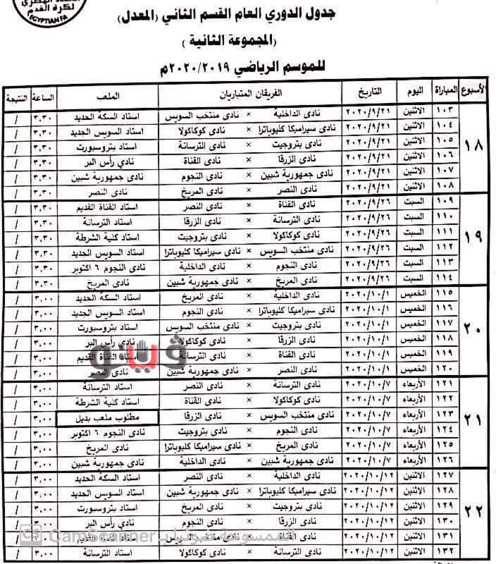 أعلنت لجنة مسابقات دوري القسم الثاني برئاسة خالد كامل جدول مواعيد المباريات المتبقية بدوري القسم الثاني، للمجموعات الثلاث الأولي والثانية والثالثة.