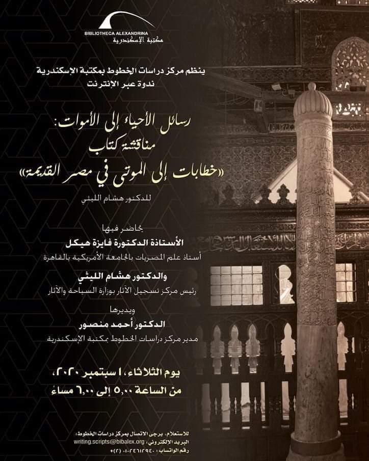 مكتبة الإسكندرية تناقش "رسائل الأحياء إلى الأموات في مصر القديمة" أون لاين