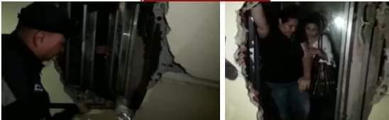 وتمكنت القوات من إخراجهم عقب تكسير فتحة بالحائط المودى الى غرفة المصعد دون ثمة إصابات.