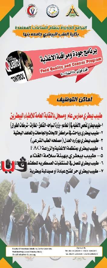 واستطرد مؤكدا أن البرامج تقبل الطلاب من الثانوية العامة والطلاب الوافدين و علمي علوم الحاصلين على الحد الأدنى لقطاع الطب البيطري وخريجي الكليات الطبية والعلمية والطلاب الوافدين طبقا لقواعد القبول بالادارة المركزية للطلاب الوافدين.