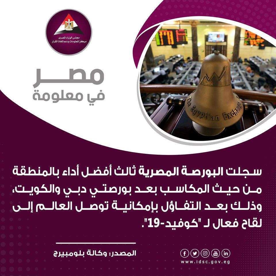 البورصة المصرية تسجل ثالث أفضل أداء بالمنطقة من حيث المكاسب | إنفوجراف الإثنين 31/أغسطس/2020 - 03:16 م 8/31/2020 3:16:09 PM البورصة المصرية أحمد رأفت شارك طباعة 18 حجم الخط شارك طباعة البورصة المصرية لقاح فيروس كورونا سوق دبي المالي