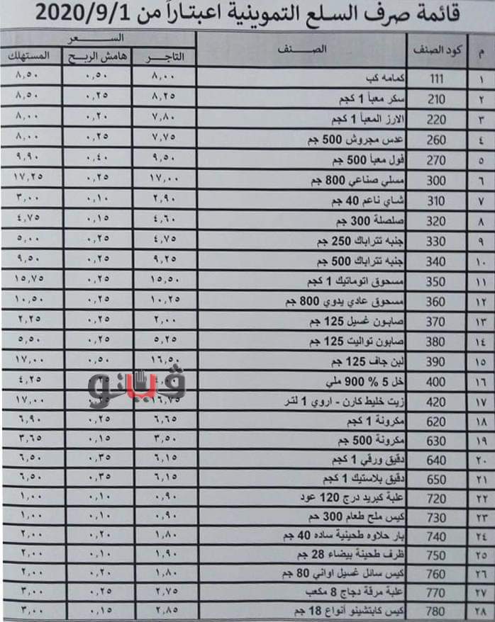 أسعار 27 سلعة تموينية على البطاقات اعتبارا من أول سبتمبر