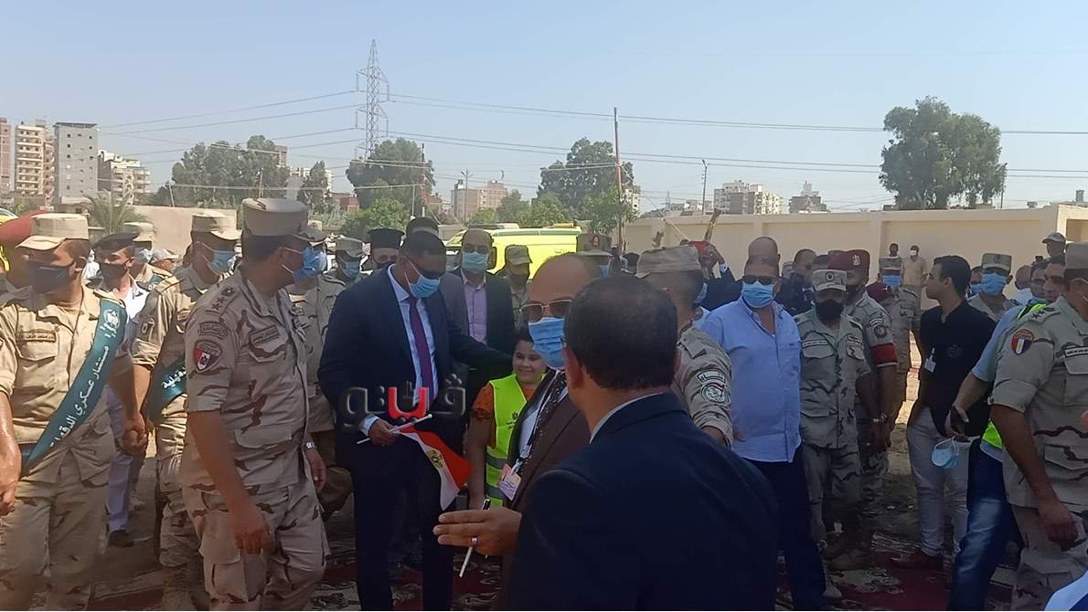 رافق المحافظ اللواء أركان حرب وليد حمودة عوض قائد قوات الدفاع الشعبي والعسكري، والعقيد تامر العوضي المستشار العسكري، وهيثم الشيخ نائب محافظ الدقهلية.