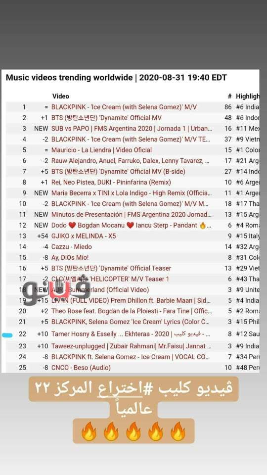 احتل كليب "اختراع" للنجم تامر حسني والفنان محمود العسيلي المركز الـ22 عالمياً و الأول في مصر على موقع الفيديوهات الشهير "يوتيوب" بعد طرحه بأقل من 4 أيام.