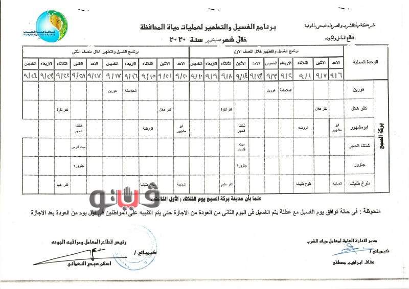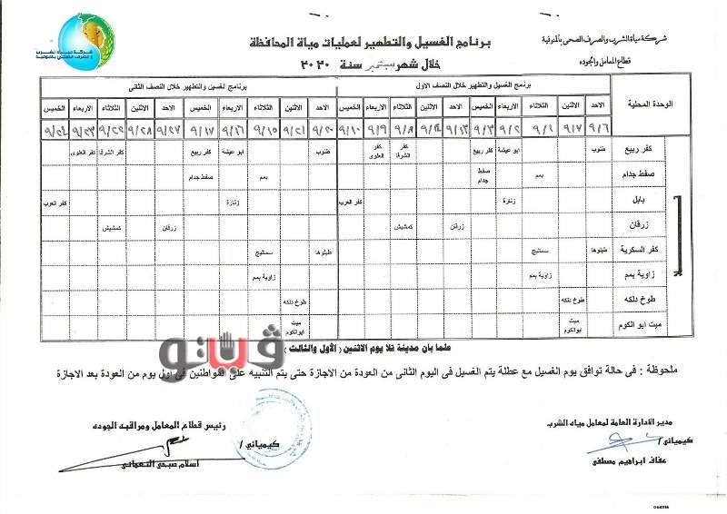 ونبهت الشركة على المواطنين بضرورة تدبير إحتياجاتهم من المياه وعدم إستخدامها خلال فترة الغسيل حتى وإن وجدت بالشبكة.