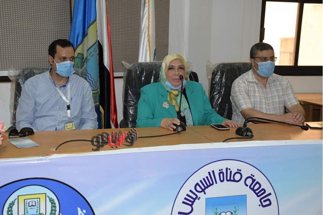 و شددت رئيس الجامعة على ضرورة التزام الجميع بالاجراءات الاحترازية للوقاية من فيرس كورونا التى أقرتها الجامعة أثناء فترة عمل مكتب التنسيق حرصا على سلامة الجميع ، رحبت الدكتورة ماجدة هجرس بالطلاب و أولياء أمورهم داخل جامعة القناة، متمنيه لهم حسن اختيار الرغبات التى تعد بداية الطريق الذى يستطيعون فيه التفوق والإبداع .