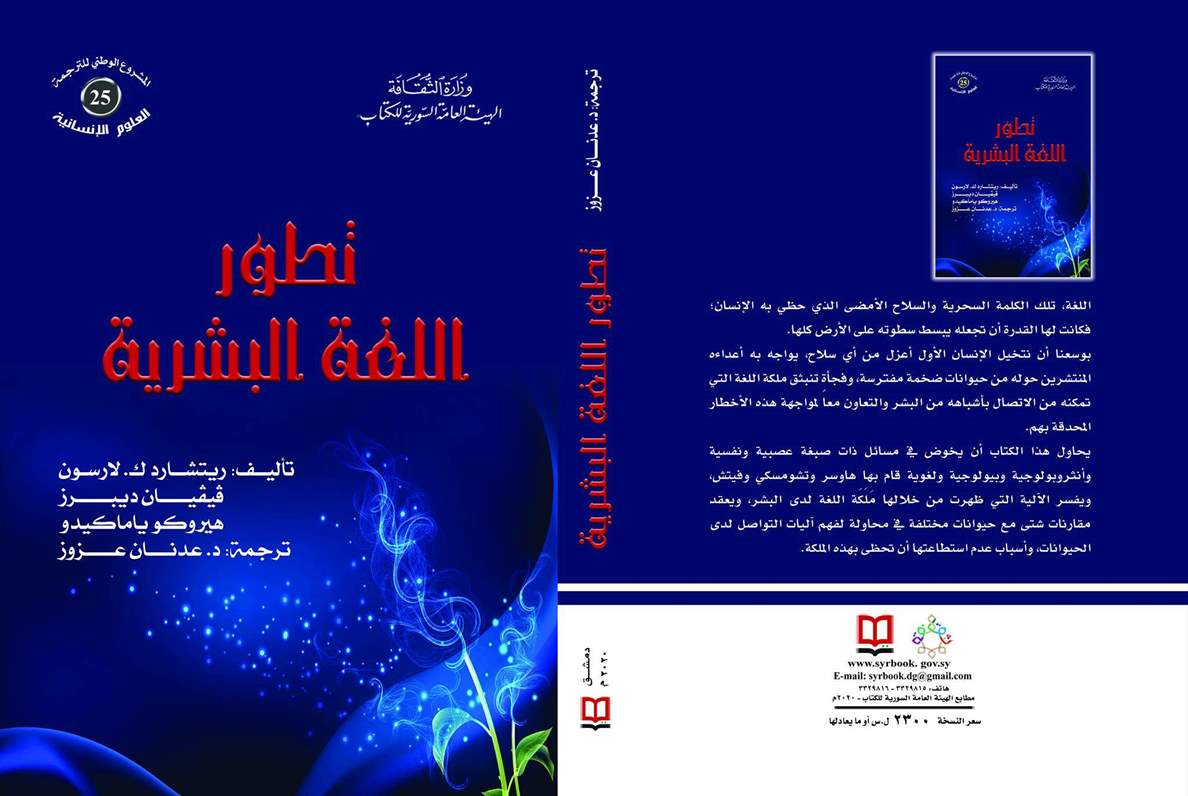 صدر حديثاً عن الهيئة العامة السورية للكتاب، الترجمة العربية الأولي من كتاب " تطور اللغة البشرية " تأليف ريتشارد ك. لارسون - فيفيان ديبرز - هيروكو ياما كيدو، وقام بأعمال الترجمة الدكتور عدنان عزوز، ويقع الكتاب في 525 صفحة من القطع الكبير، ويأتي ذلك ضمن المشروع الوطني للترجمة بسوريا.
