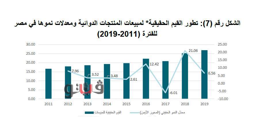 رصدت دراسة أعدها المركز المصري للدراسات الاقتصادية تحت عنوان «كيف استفادت صناعة الدواء المصرية من جائحة كورونا؟» تطور القيم الحقيقية لمبيعات المنتجات الدوائية ومعدلات نموها في مصر في الفترة من 2011- 2019.. وسوف نتعرف عليها من خلال الإنفوجراف التالي:
