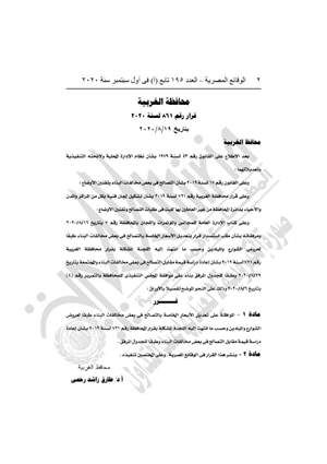 نشرت جريدة الوقائع المصرية، في عددها رقم 195 تابع (أ)، الصادر أول سبتمبر 2020، قرار محافظة الغربية رقم 861 لسنة 2020 الخاص بتعديل أسعار التصالح في مخالفات البناء طبقا لعروض الشوارع والميادين ،وذلك حسب ما انتهت إليه اللجنة المشكلة بقرار المحافظة رقم 721 لسنة 2019 بشأن إعادة دراسة قيمة مقابل التصالح في بعض مخالفات البناء.
