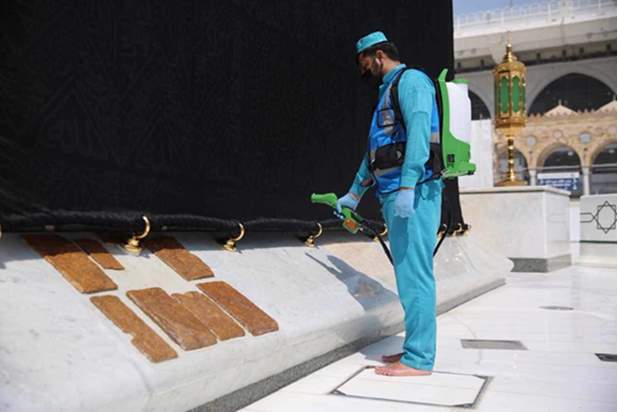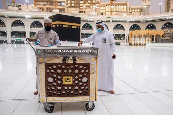 وتمت مراسم غسل الكعبة وسط إجراءات احترازية