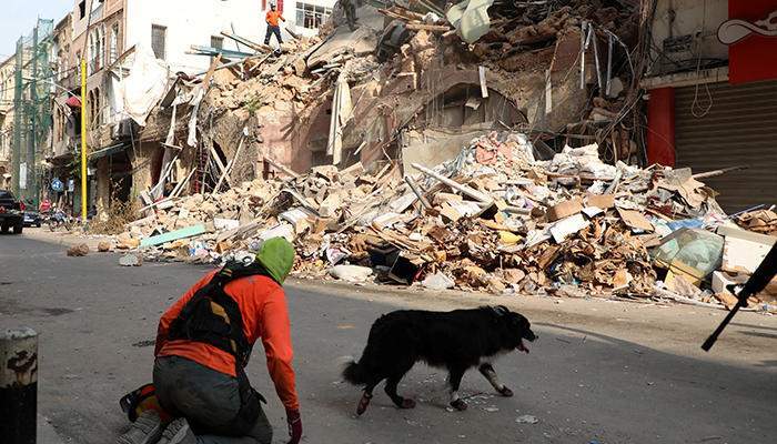 لحظة البحث عن "قلب ينبض" تحت ركام بيروت.. وكلب مدرب يعود لنفس المكان وسط الأنقاض | فيديو