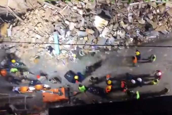 وقامت فرق الإنقاذ بعمل حفرة عمقها 3 أمتار من أجل الاقتراب من المنطقة التي تم فيها رصد مؤشرات محتملة على وجود أحياء تحت أنقاض مبنى منهار.
