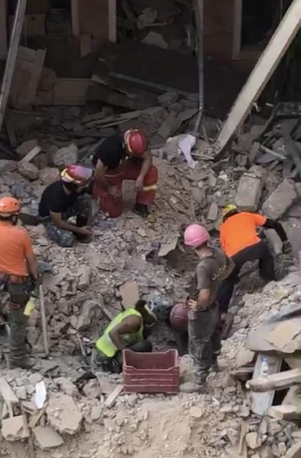 وقال المسعف إيدي بيطار، إن إشارات على وجود تنفس ونبض، وإشارات على مجسات حرارة الأجسام تعني أن هناك إمكانية لوجود ناجين.