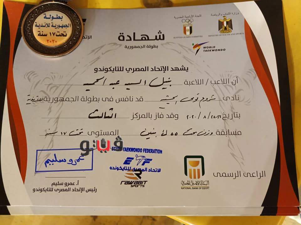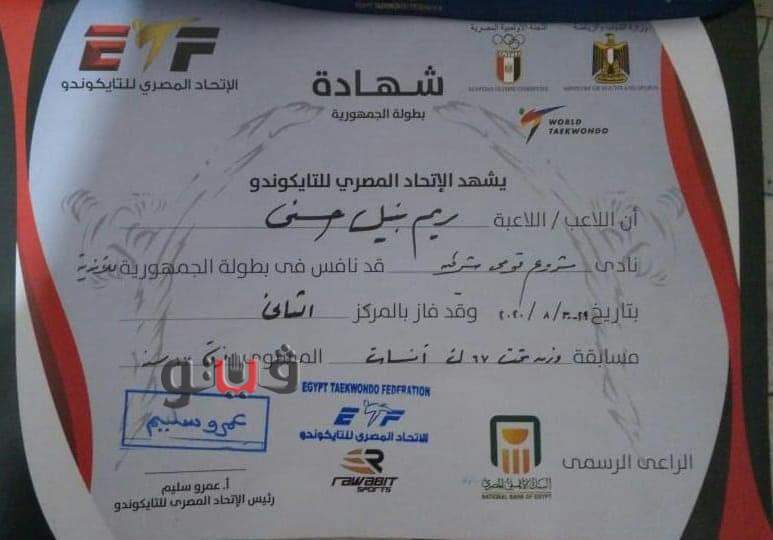 وقال جاءت اللاعبة ريم نبيل حسنى بالمركز الثانى ثم كل من شريف عبدالمنعم موسى ونبيل السيد عبدالحميد وعلياء ابراهيم عبدالرحمن بالمركز الثالث