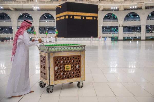 الفاخر وعطر الورد وماء الورد ممزوجاً بماء زمزم.