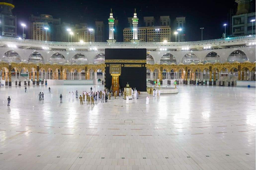 عملية غسيل الكعبة المشرفة في ظل جائحة كورونا.