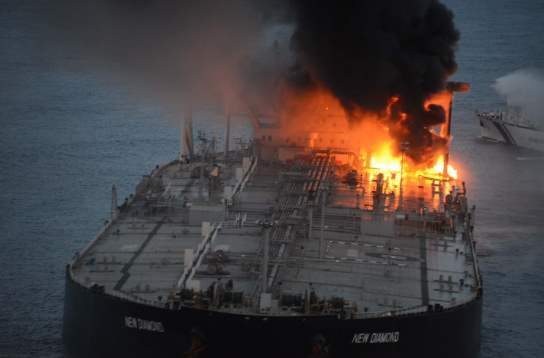 للحريق الذى اندلع فى ناقلة النفط "إم تى نيو دياموند" فى البحر قبالة الساحل
