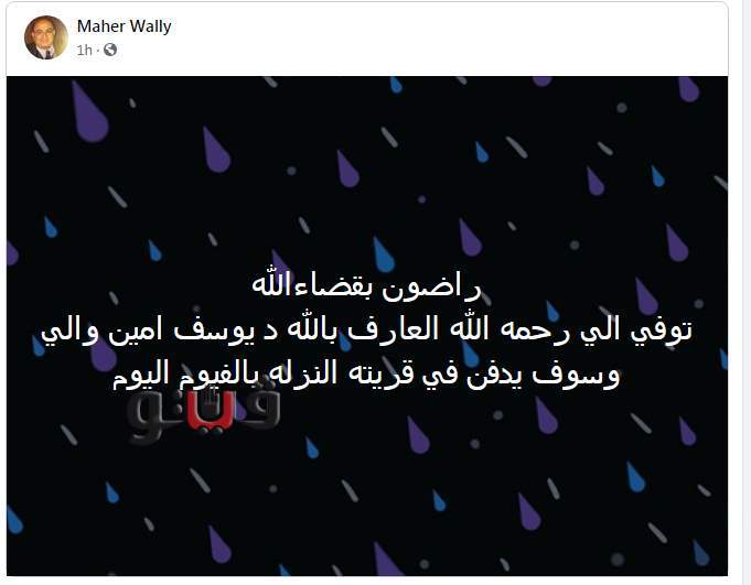 تعرف على موعد ومكان دفن جثمان يوسف والي