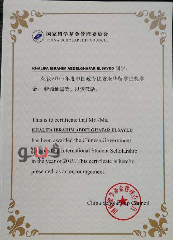 مجلس المنح الصينية يمنح جائزة الطالب المميز ٢٠١٩ لباحث بجامعة بنها
